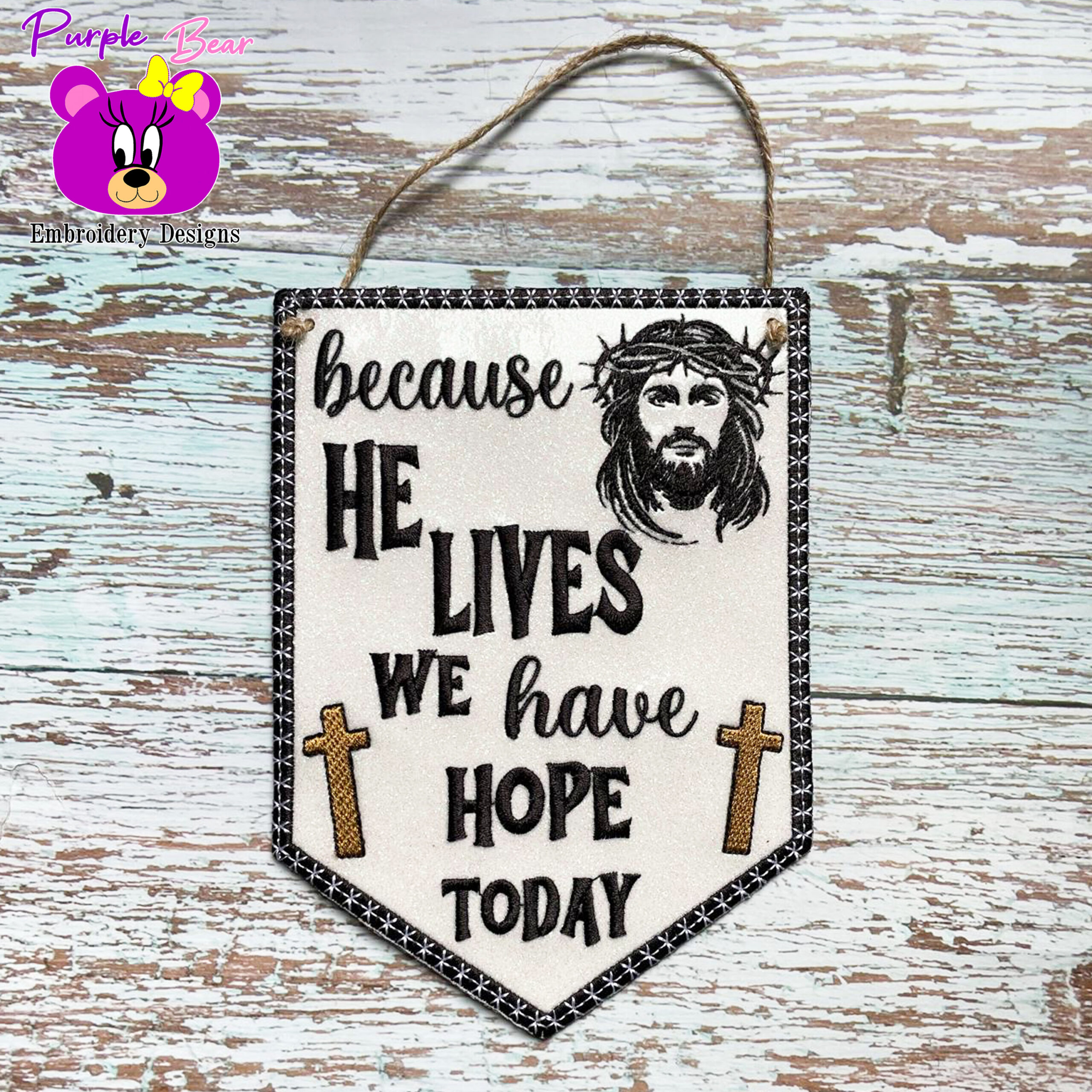 - Design Name – Because He Lives, Hanger 3 Sizes