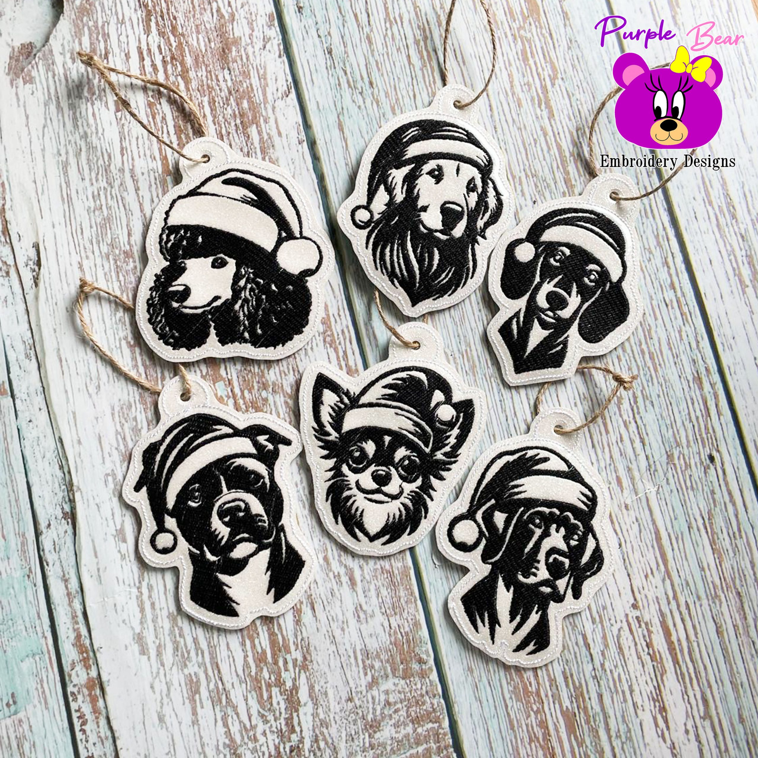- Design Name – Christmas Dog Ornaments, Set 1 6 designs