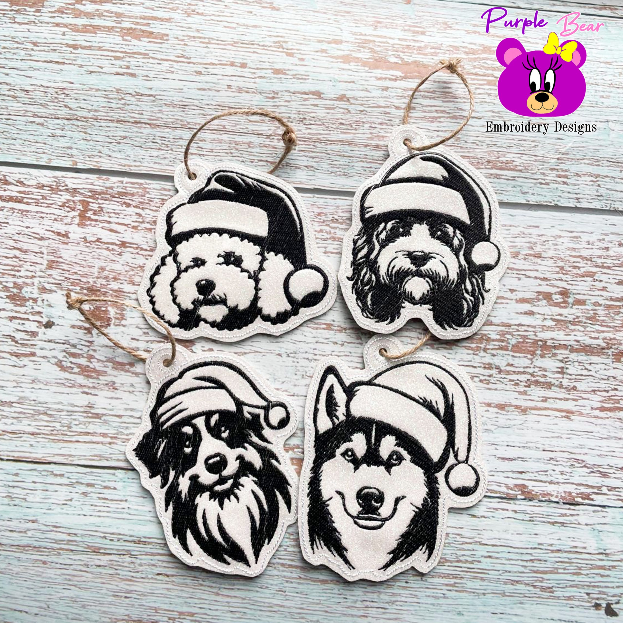 - Design Name – Christmas dogs Ornaments, Set 4, 4 designs